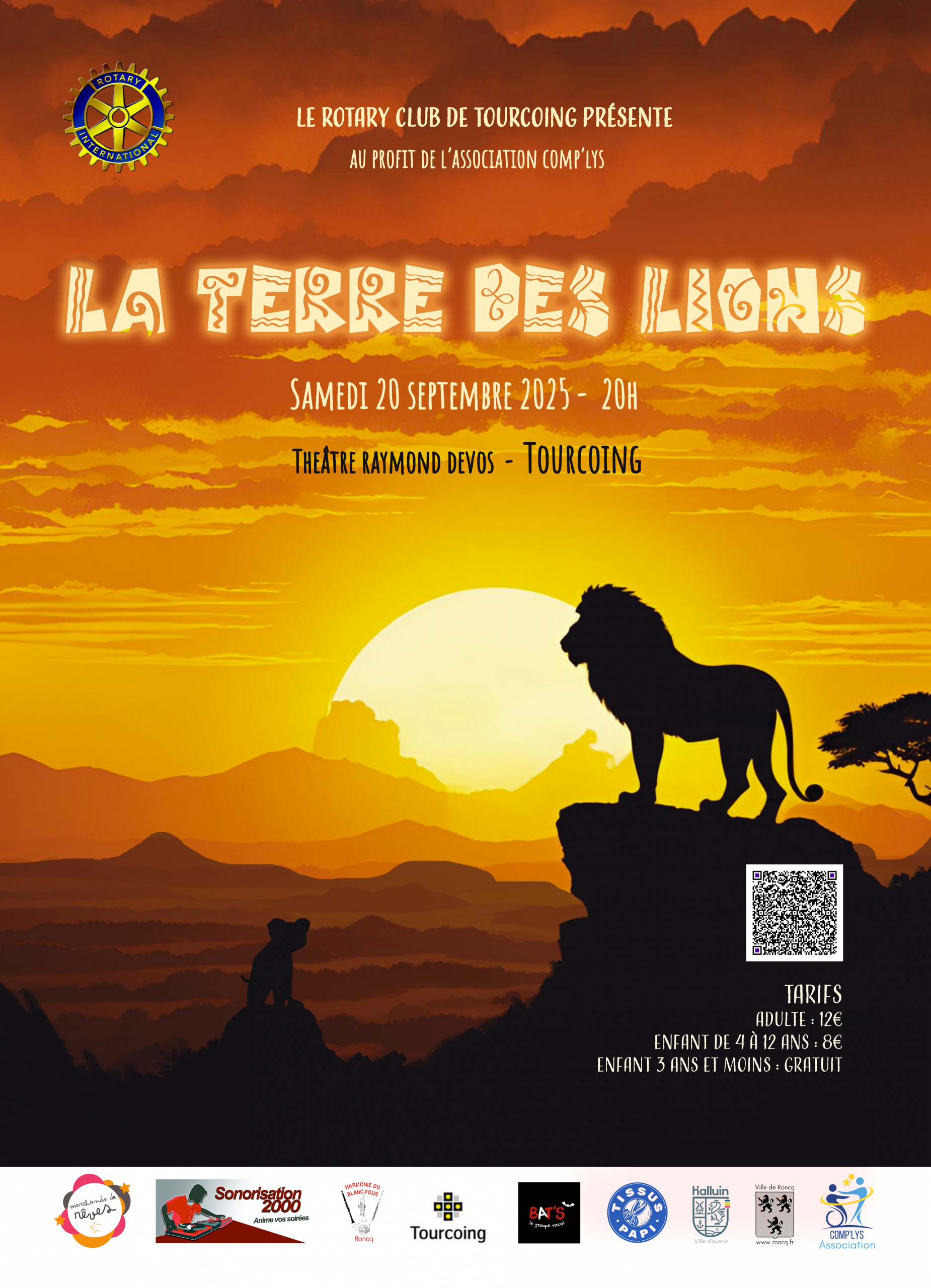 Novembre 2024 et mars 2025, les Marchands de Rêves fêtent leurs 20 ans en compagnie de l’Harmonie du Blanc Four de Roncq et de l’ensemble vocal éphémère Bat’s et ont joué à guichet fermé pour leur nouveau spectacle « Sur la Terre des Lions »